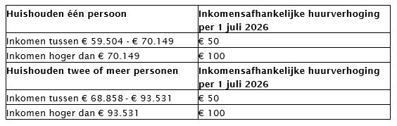 Elk jaar zit er een maximumbedrag aan de huurprijzen. Voor de inkomensafhankelijke huurverhoging geldt dat: