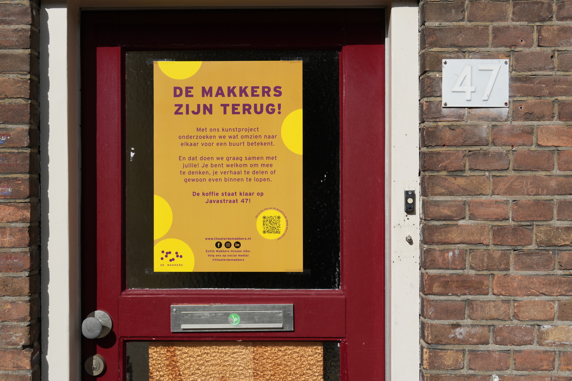 Corinne Heyrman, maker bij De Makkers vertelt: “Op dit moment doen we onderzoek naar de buurt: hoe voelen de mensen die hier wonen zich? Wat zijn verschillende perspectieven? En wat betekent dat nu eigenlijk, een volksbuurt? We volgen veel bestaande activiteiten mee en zijn ook vaak op straat te vinden. Ook kunnen buurtbewoners bij ons langskomen voor koffie of thee.”